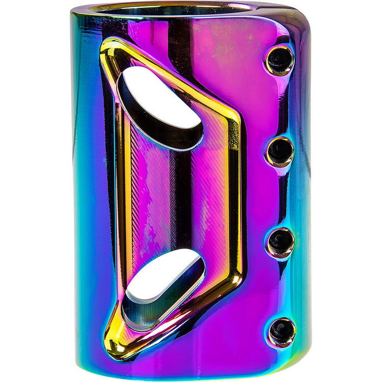 • NKD SCS Pro Clamp to poczwórny, lekki zacisk do hulajnogi wyczynowej z aluminiową, bardzo wytrzyma konstrukcją, która daje pewność trzymania kierownicy przy każdym tricku. Kompatybilny z systemem kompresji SCS oraz kierownicami standardowymi i oversized.