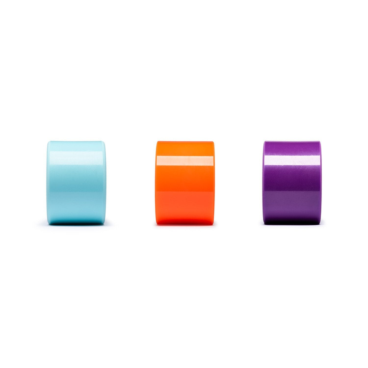 - Twardość (durometer): 77A (niebieskie), 80A (pomarańczowe), 83A (fioletowe) – wybór pod styl jazdy i nawierzchnię