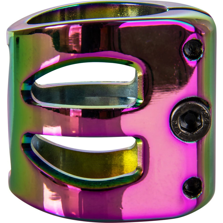 • NKD Rally V4 Clamp to potrójny, lekki zacisk do hulajnogi wyczynowej z aluminiową, bardzo wytrzyma konstrukcją, która daje pewność trzymania kierownicy przy każdym tricku. Kompatybilny z systemami HIC, IHC i ICS.