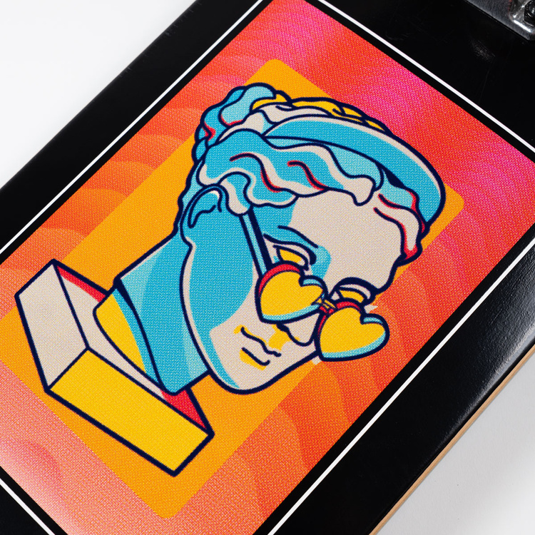 - Szerokość decku: 8.25" (21 cm) – idealny balans pomiędzy łatwym kopaniem flipów i komfortową jazdą oraz lądowaniem tricków
