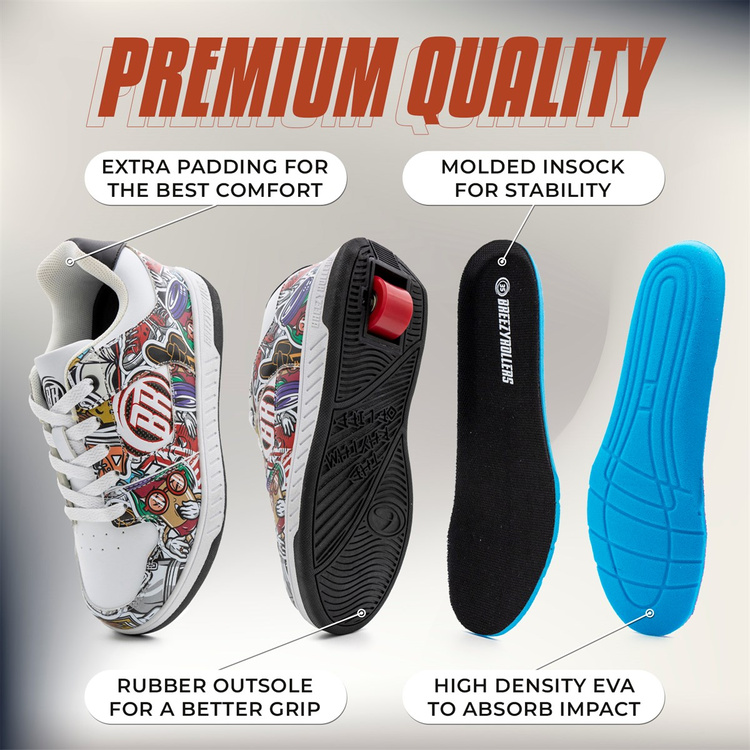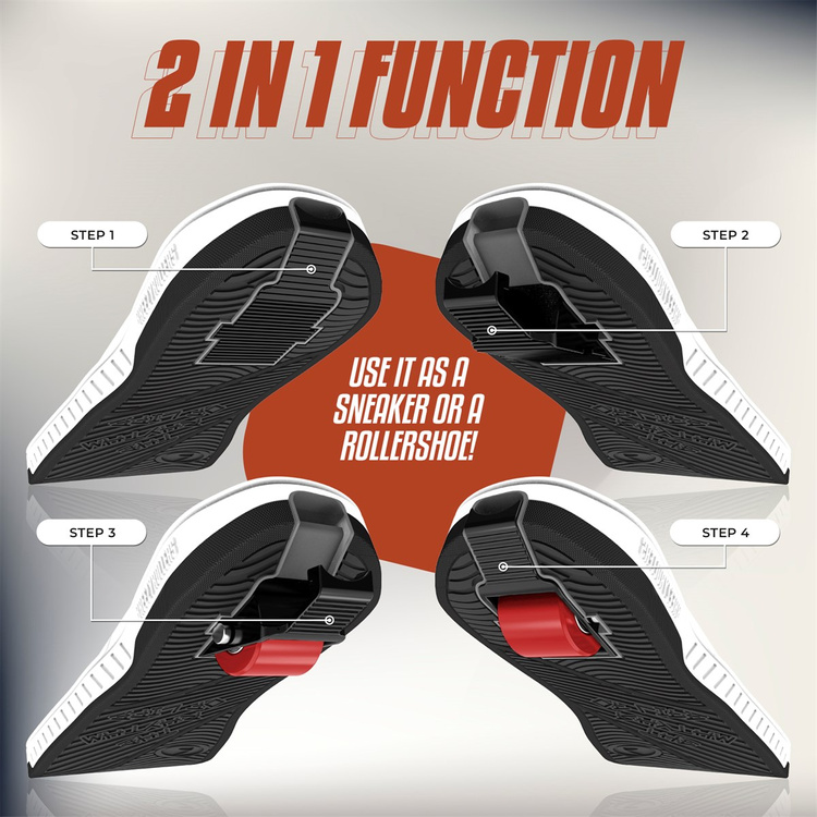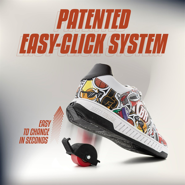 Opatentowany system kółek umożliwia niższe umieszczenie koła, co ułatwia utrzymanie stóp w pozycji równoległej do ziemi. Rolki ukryte w sportowych butach to świetny i nowoczesny sposób na dyskretne przenoszenie ze sobą swojego sprzętu do jeżdżenia w dowolne miejsce! Złap każdy zjazd z górki, jaki znajdziesz na swoich butorolkach od Breezy Rollers!